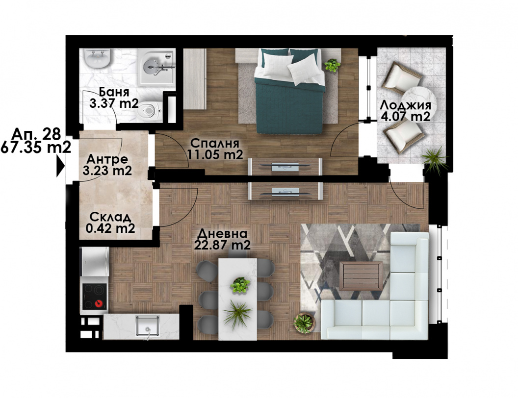 Ап. с 1 спалня